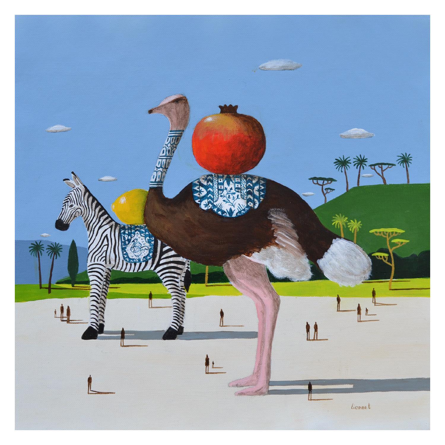 Cette oeuvre d'art contemporain unique et originale "autruche et zèbre" a été réalisée par l'artiste contemporain Lionnet Pascal.
