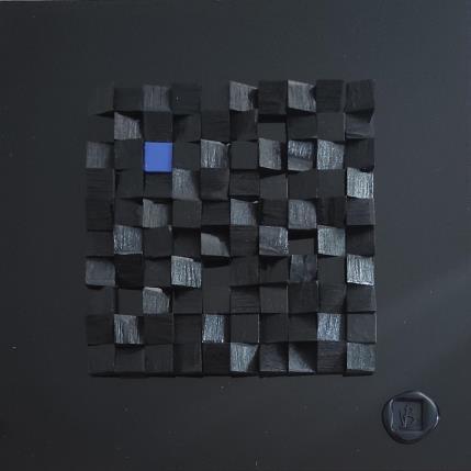 Son travail repose sur la réflexion de la lumière sur différents supports et matières, tels que la feuille de cuivre dorée, et la gamme chromatique des noirs appliquée sur des cubes en bois, coupés en biais.