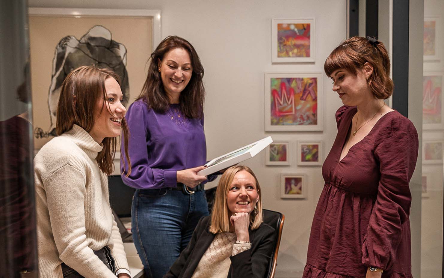 Pour l'art, par l'art. La raison d'être de Carré d'artistes, c'est de dénicher et d'accompagner les meilleurs artistes contemporains pour leur permettre de vivre de leur art et de proposer à nos clients des œuvres uniques, de tous styles et de qualité. Et pour y parvenir, dans les coulisses, se cachent 4 personnes : Franck, Alix, Sonia et Léa.
