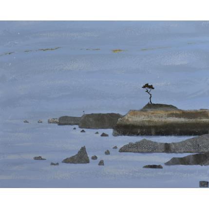 Utilisant dans ses travaux la matière brute, le sable, la terre de sienne, la feuille de zinc oxydé, d’or, ou de plomb, mais aussi les aplats de peinture à l’huile et acrylique, l’artiste invente pour l’homme un espace fait de points, de lignes pures et de formes géométriques, dans lequel il va devoir trouver sa place. Sa pratique est avant tout un regard sur l’humain, chaque petite silhouette pouvant représenter dans l’imaginaire du peintre un symbole, culturel, géographique, mythologique, historique. Qu’il place l’homme dans l’univers marin de ses origines malouines, dans un paysage montagneux ou urbain, la réflexion du peintre tend vers l’universalité de la place de l’homme dans son environnement.