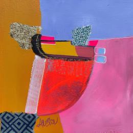 L'artiste a utilisé les techniques Acrylique, Collage, Feuille d'or, Papier pour créer cette peinture petit format sur Carton de style Abstrait.