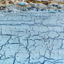 Travailleuse acharnée et passionnée, elle nous entraîne à travers ses mélanges de pigments dans un monde minéral et brut. Ses couleurs métalliques, dorées, cuivrées, rouillées, s’organisent dans un rendu fissuré, craquelé et accidenté, rempli de délicatesse, de poésie et de sérénité.