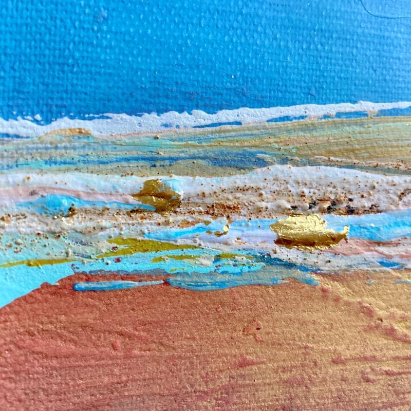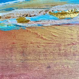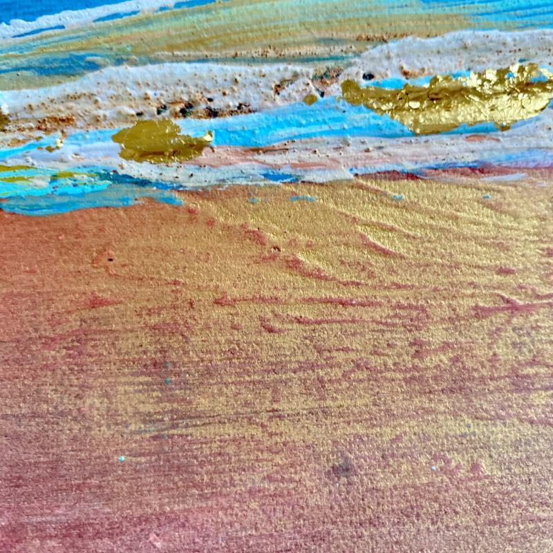 L'artiste a utilisé la technique Acrylique et de la dorure a la feuille pour créer cette peinture sur toile petit format de style Semi-abstraite.