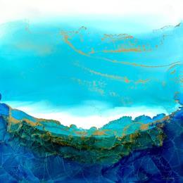 L'artiste a utilisé la technique Acrylique pour créer cette peinture petit format sur Dibon de style Abstrait sur les thèmes Marine, Minimaliste, Paysages.