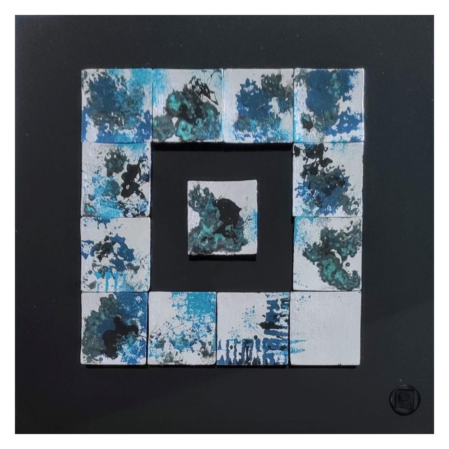 L'artiste a utilisé les techniques Acrylique, Bois, Collage, Feuille d'argent, Huile, Résine pour créer cette peinture petit format sur Dibon de style Abstrait sur le thème Minimaliste.