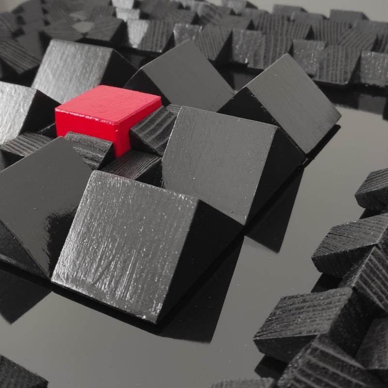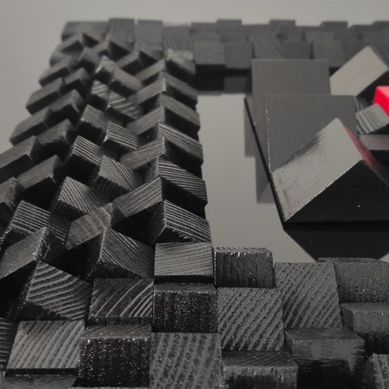 L'artiste a utilisé les techniques Acrylique, Bois, Collage, Laque pour créer cette peinture grand format sur Dibon de style Abstrait sur le thème Minimaliste.