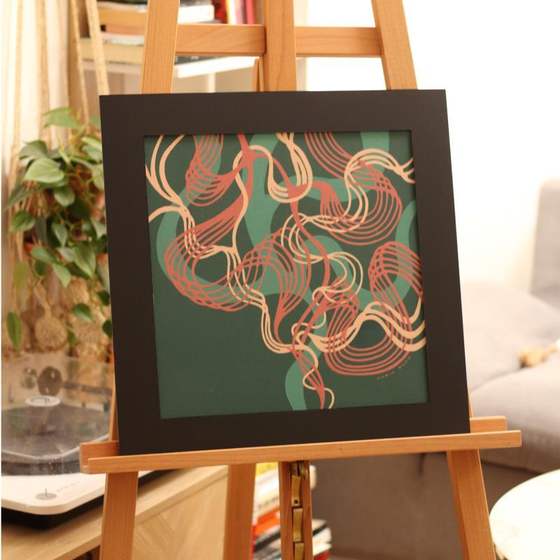 L'artiste a utilisé la technique Acrylique pour créer cette peinture petit format au style Abstrait.