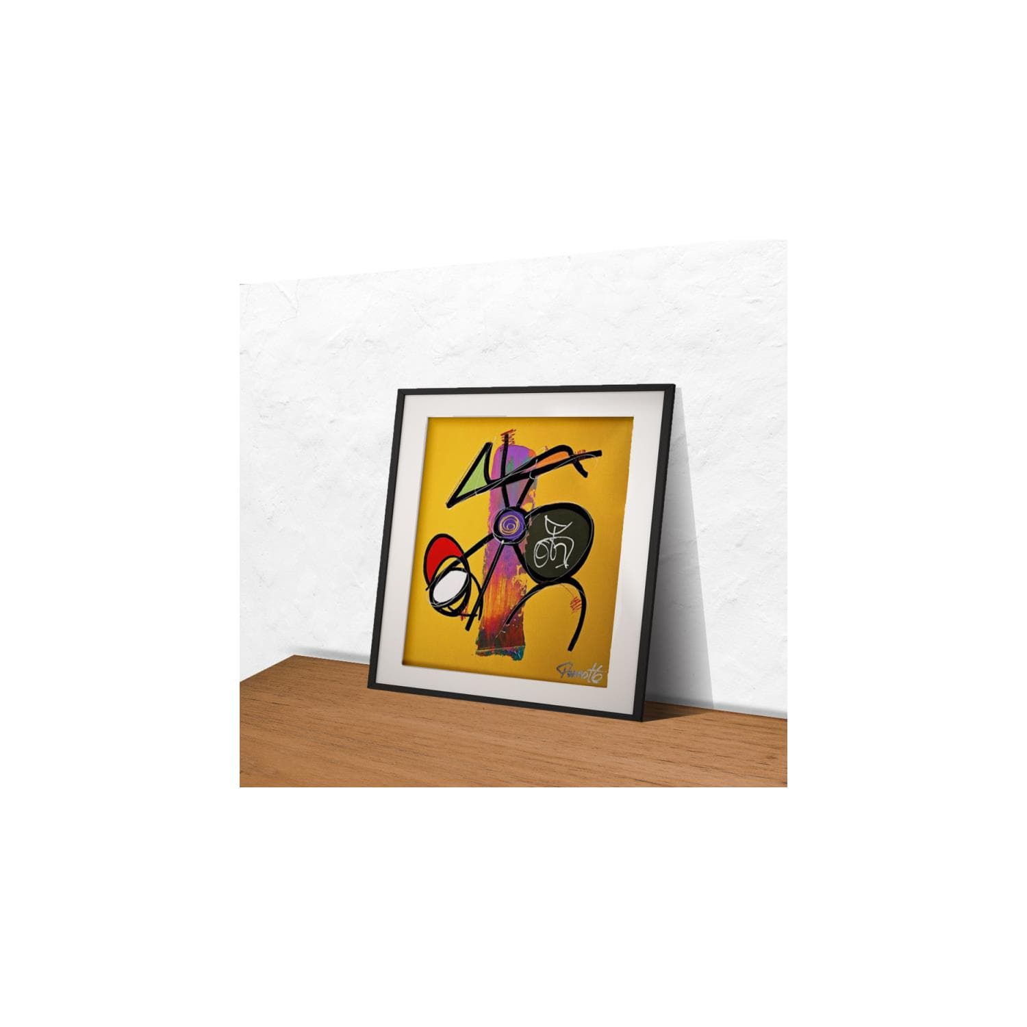 Cette œuvre fait partie de la collection exclusive de Noël. Elle est montée avec un passe-partout noir qui apporte élégance, contraste et profondeur ainsi qu'une toute nouvelle énergie grâce aux couleurs qui deviennent plus puissantes.