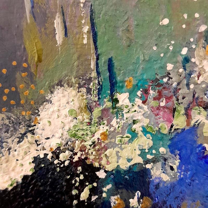 L'artiste a utilisé la technique Acrylique pour créer cette peinture petit format sur Toile de style Abstrait.