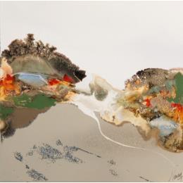 L'artiste a utilisé les techniques Acrylique, Encre pour créer cette peinture petit format sur Autre de style Abstrait.