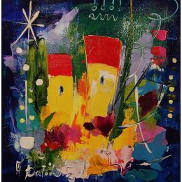 L'artiste a utilisé la technique Acrylique pour créer cette peinture petit format sur Toile de style Abstrait sur les thèmes Paysages, Architecture.
