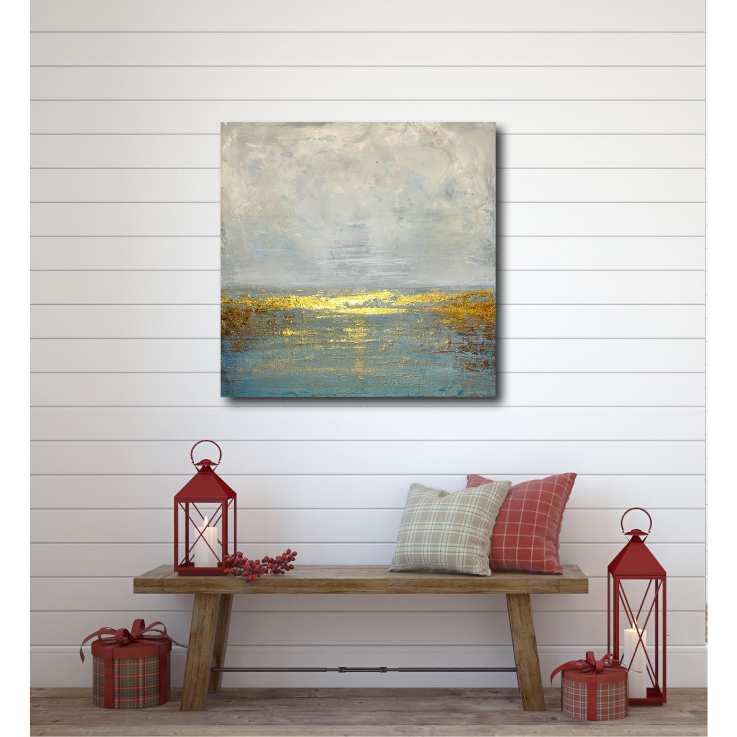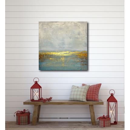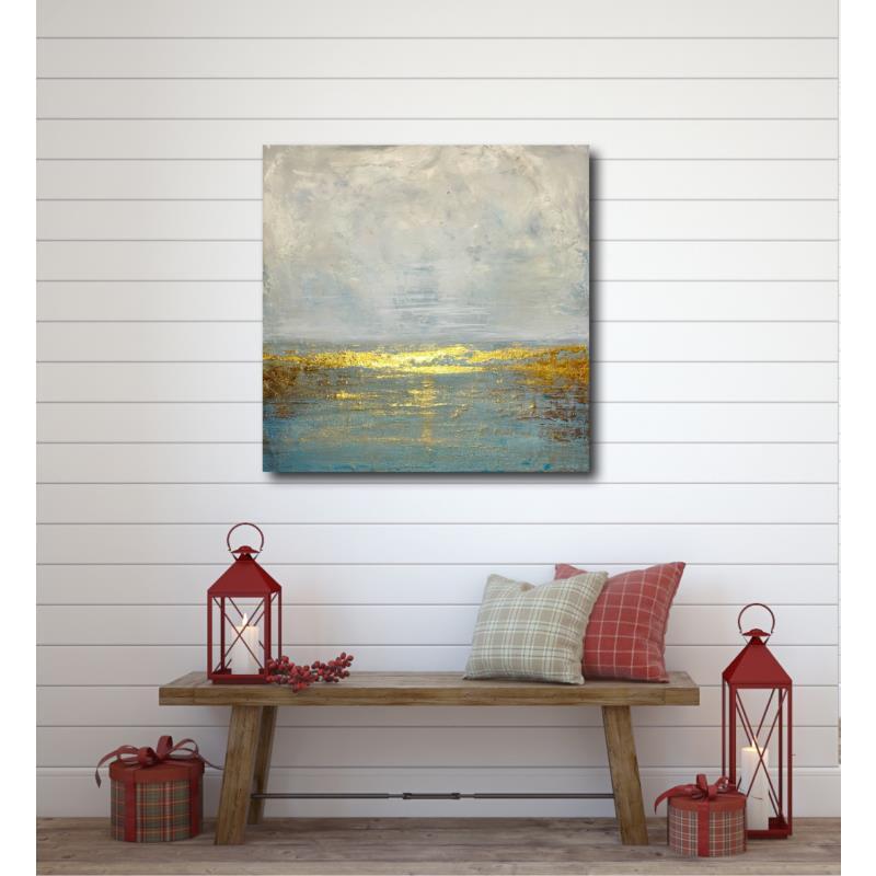 L'artiste a utilisé la technique Acrylique et de la dorure a la feuille pour créer cette peinture sur toile grand format de style Semi-abstraite.
