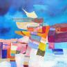 L'artiste a utilisé les techniques Acrylique, Collage, Pastel, Feuille d'or, Papier pour créer cette peinture petit format sur Carton de style Abstrait sur le thème Paysages.