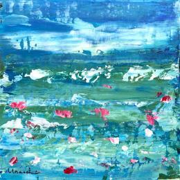 L'artiste a utilisé la technique Mixte pour créer cette peinture petit format sur papier épais (400g) de style Figuratif-Abstrait sur le thème Vues marines.