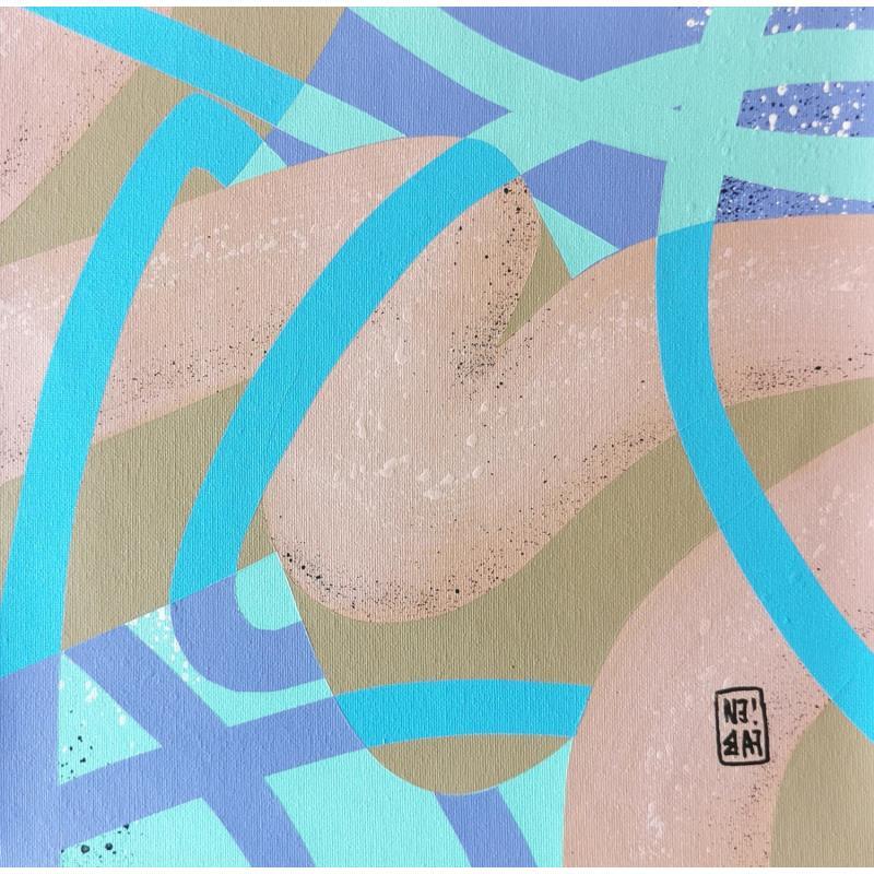 L'artiste a utilisé les techniques Acrylique, Graffiti pour créer cette peinture petit format sur Toile de style Abstrait sur le thème Paysages.