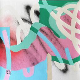 L'artiste a utilisé les techniques Acrylique, Graffiti pour créer cette peinture petit format sur Toile de style Abstrait sur le thème Paysages.