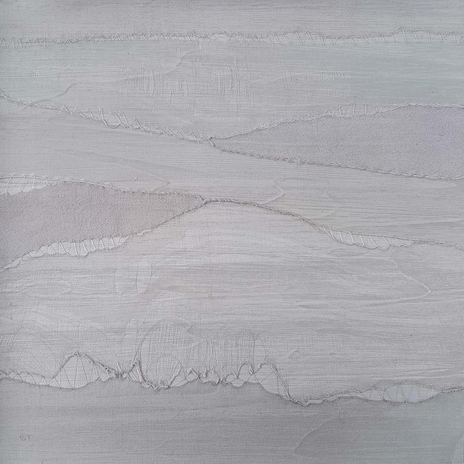 L'artiste a utilisé les techniques Acrylique, Textile pour créer cette peinture petit format sur Toile de style Abstrait sur le thème Paysages.