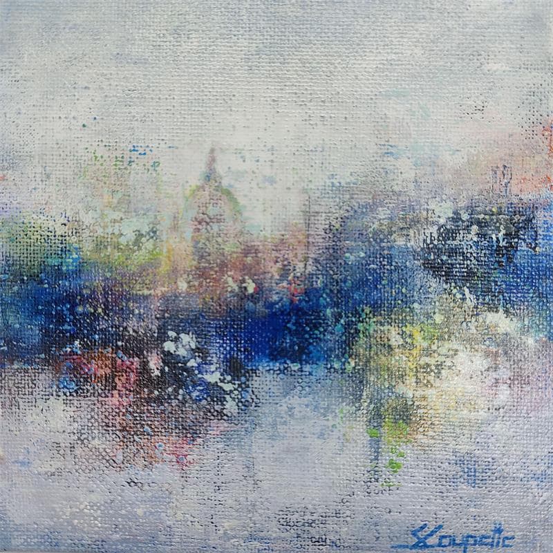 L'artiste a utilisé la technique Acrylique pour créer cette peinture petit format sur toile de style Abstrait sur le thème Urbain.