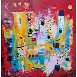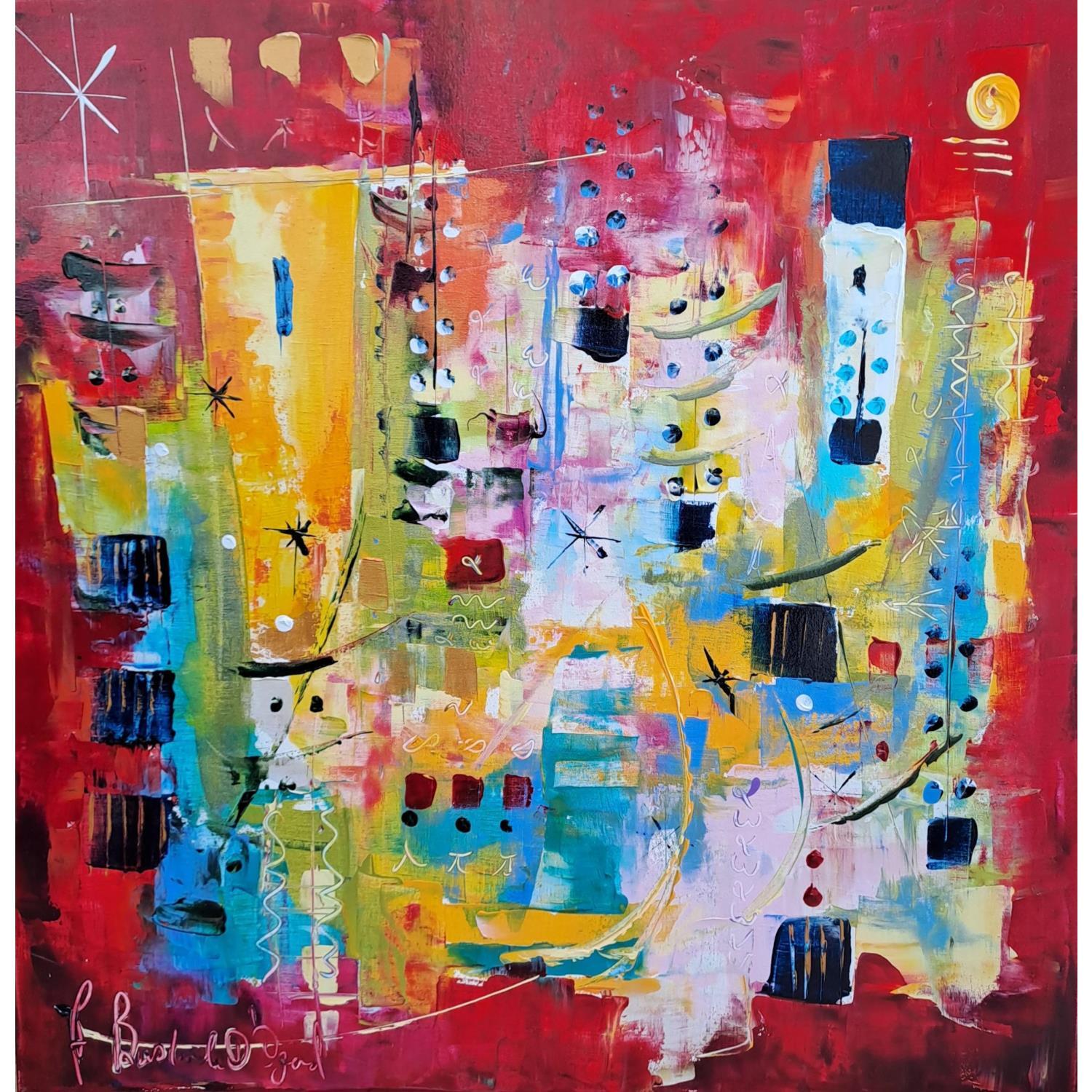 L'artiste a utilisé différentes techniques pour créer cette peinture grand format sur Toile de style Abstrait.