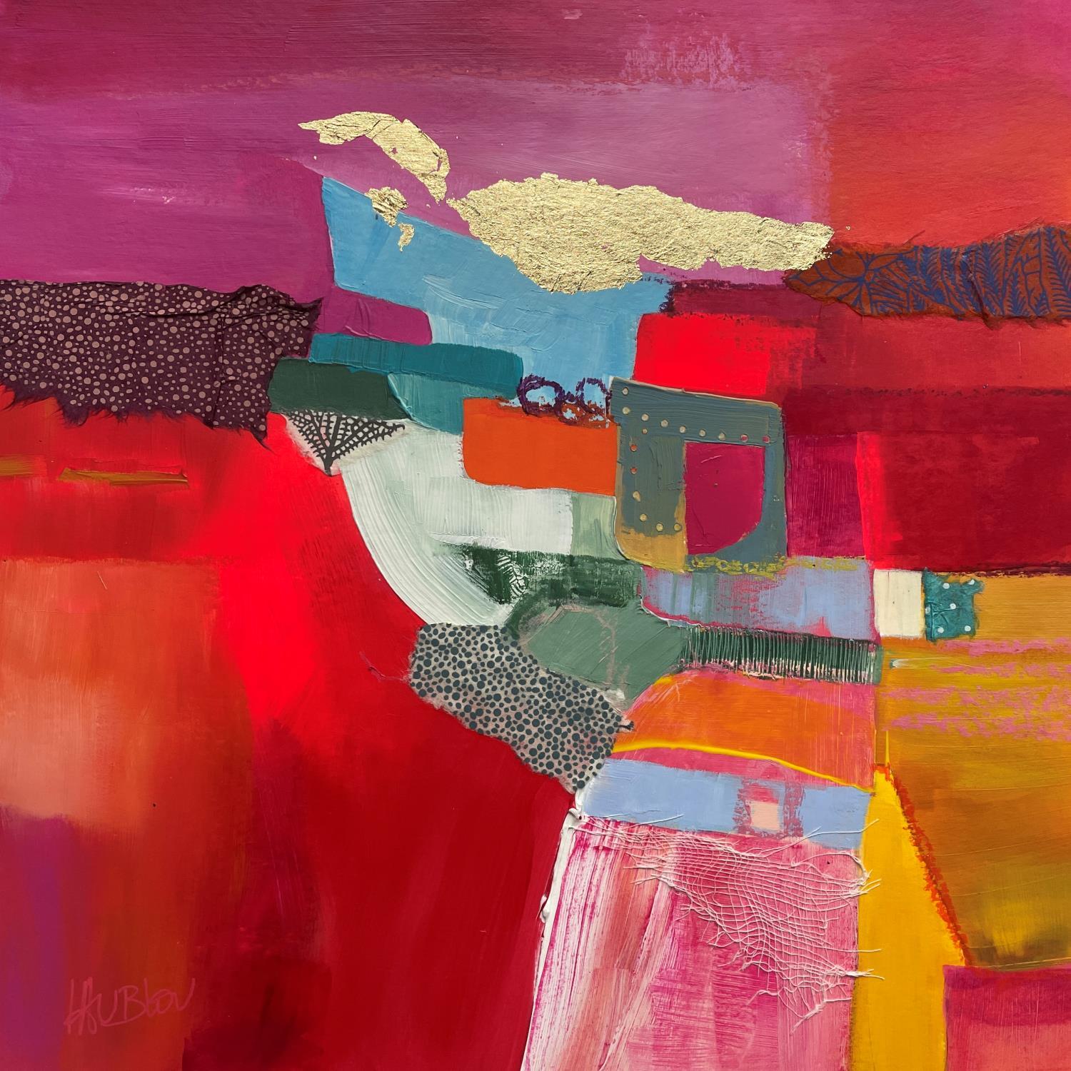 L'artiste a utilisé les techniques Collage, Feuille d'or, Papier, Pastel, Acrylique pour créer cette peinture petit format sur Carton de style Abstrait sur le thème Paysages.