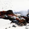 L'artiste a utilisé les techniques Encre, Acrylique pour créer cette peinture petit format sur Carton toilé de style Abstrait sur les thèmes Paysages, Nature.