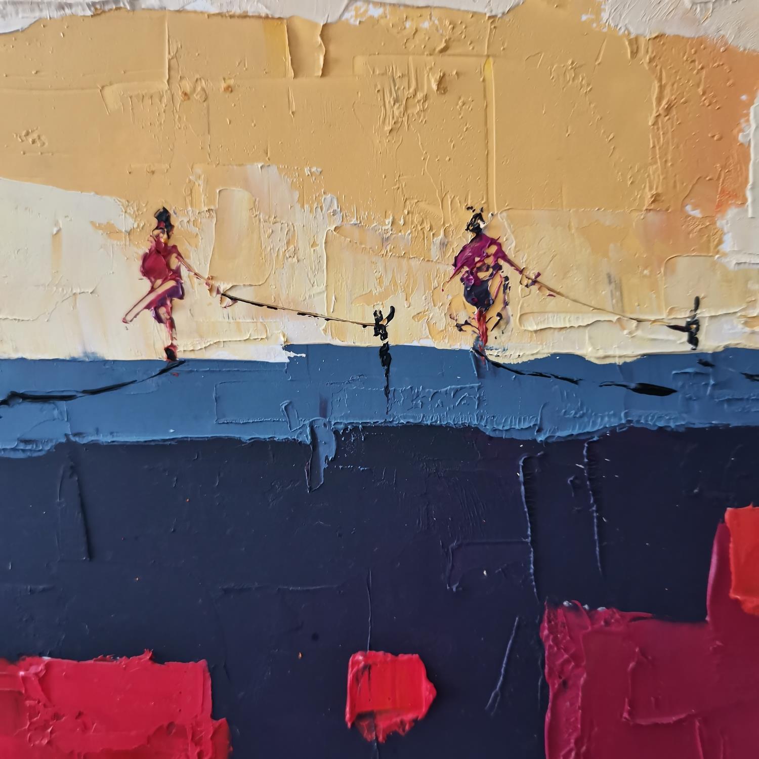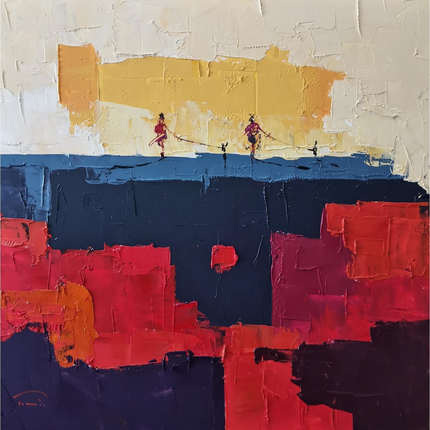 L'artiste a utilisé la technique Huile pour créer cette peinture petit format sur Papier de style Abstrait sur les thèmes Paysages, Scènes de vie.