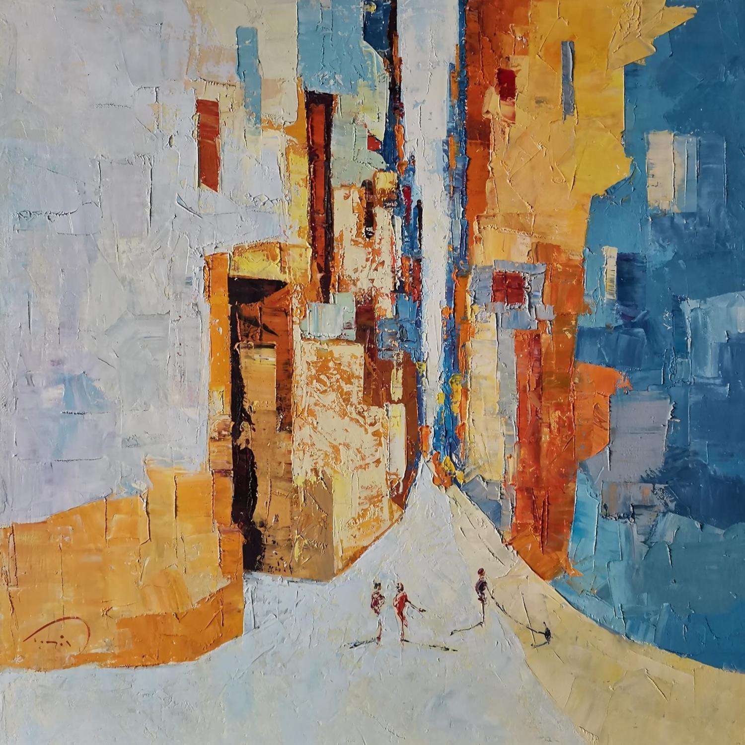 Peinture El carrer blanc  par Tomàs | Tableau Abstrait Urbain Scènes de vie Huile