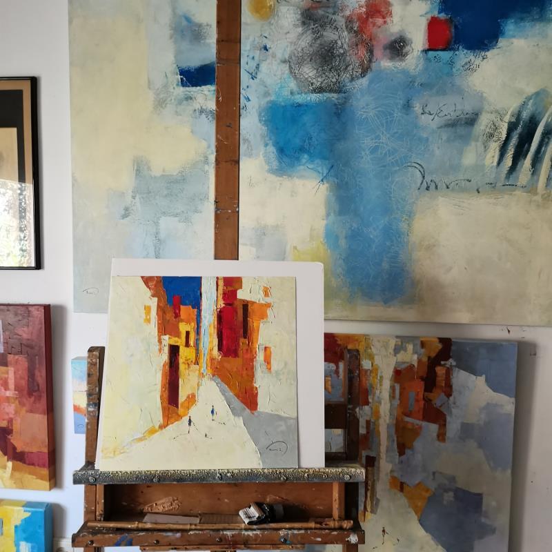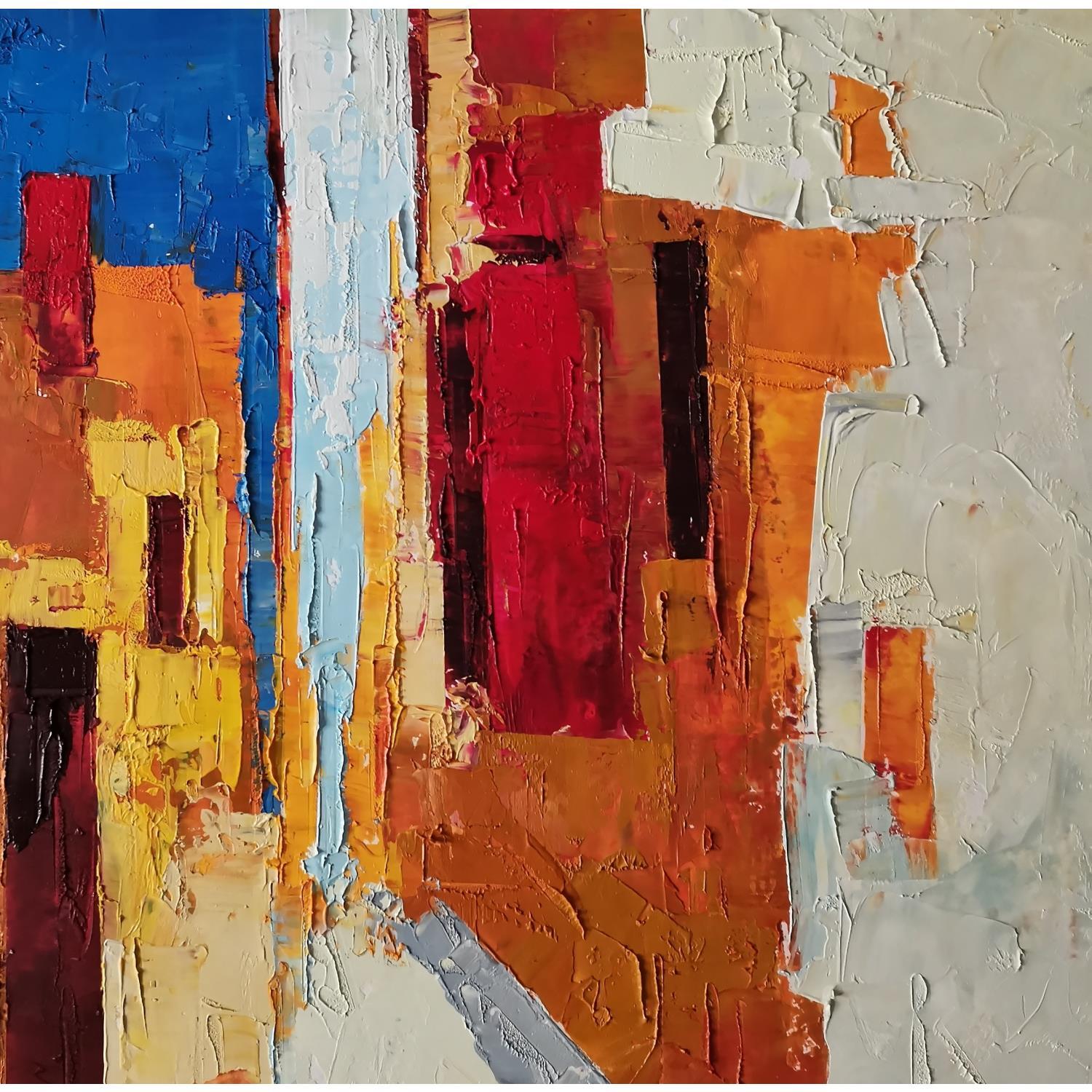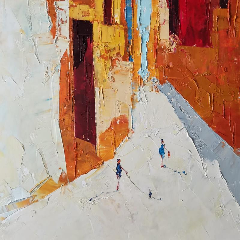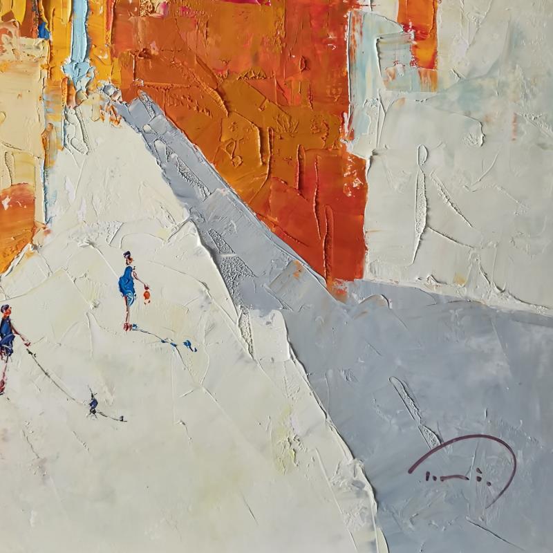 L'artiste a utilisé la technique Huile pour créer cette peinture petit format sur Papier de style Abstrait sur les thèmes Scènes de vie, Urbain.