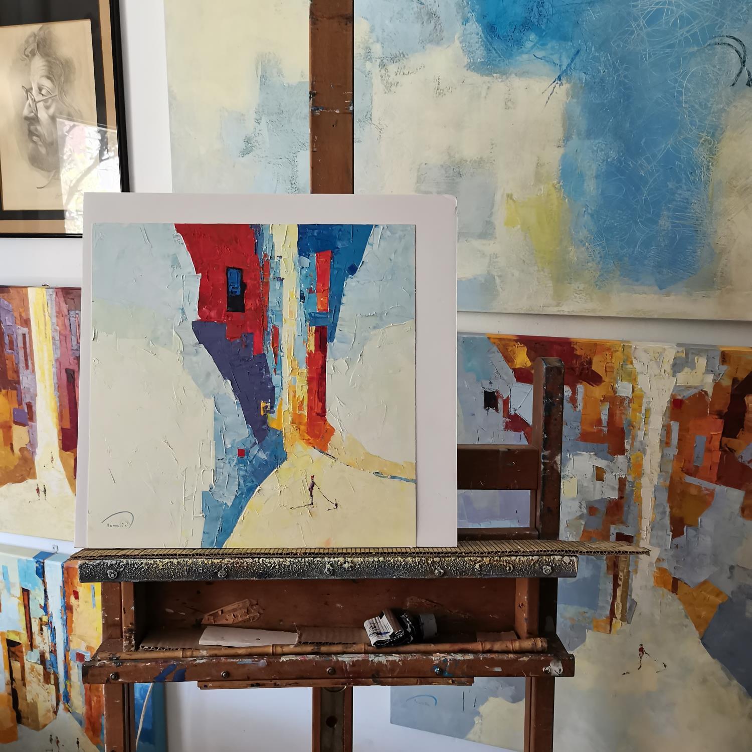 L'artiste a utilisé la technique Huile pour créer cette peinture petit format sur Papier de style Abstrait sur les thèmes Scènes de vie, Urbain.