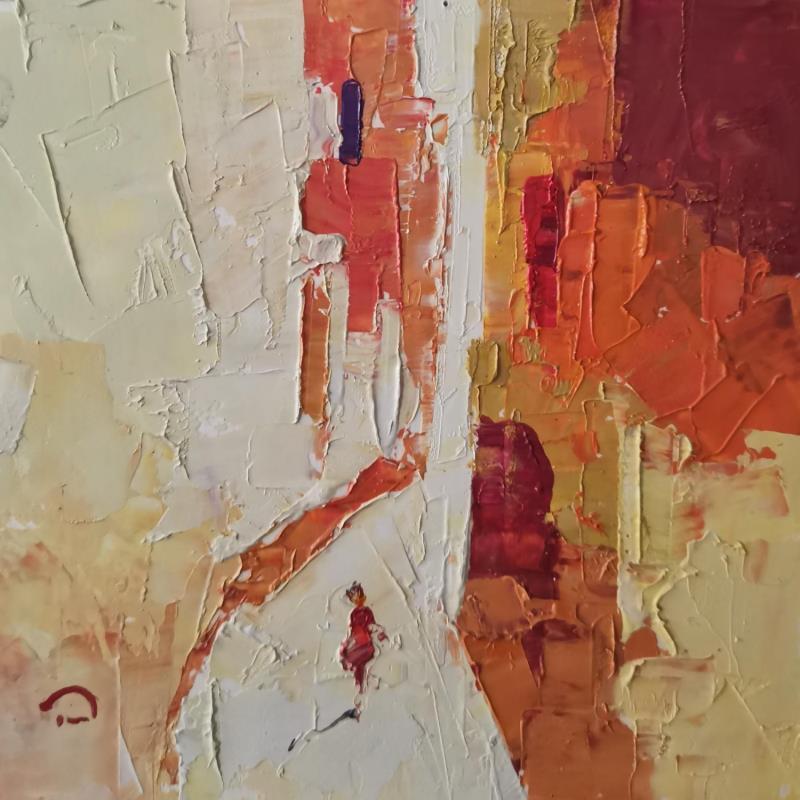 L'artiste a utilisé la technique Huile pour créer cette peinture petit format sur Papier de style Abstrait sur les thèmes Société, Urbain.