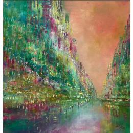 Peinture Jungle City par Levesque Emmanuelle | Tableau Abstrait Impressionnisme Urbain Huile