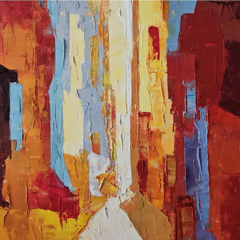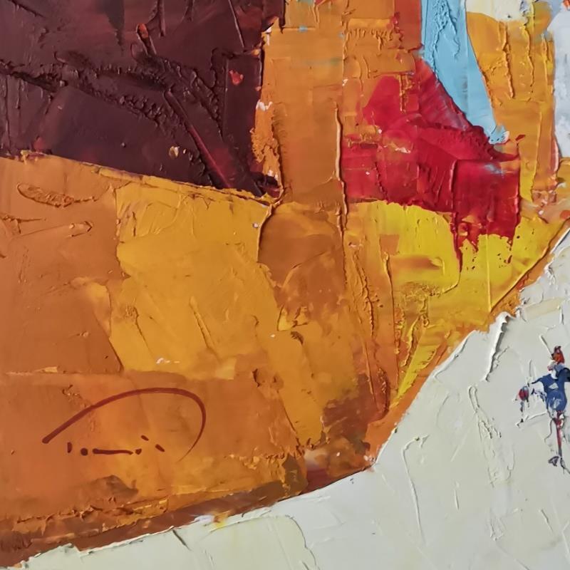 L'artiste a utilisé la technique Huile pour créer cette peinture petit format sur Papier de style Abstrait sur les thèmes Urbain, Scènes de vie.