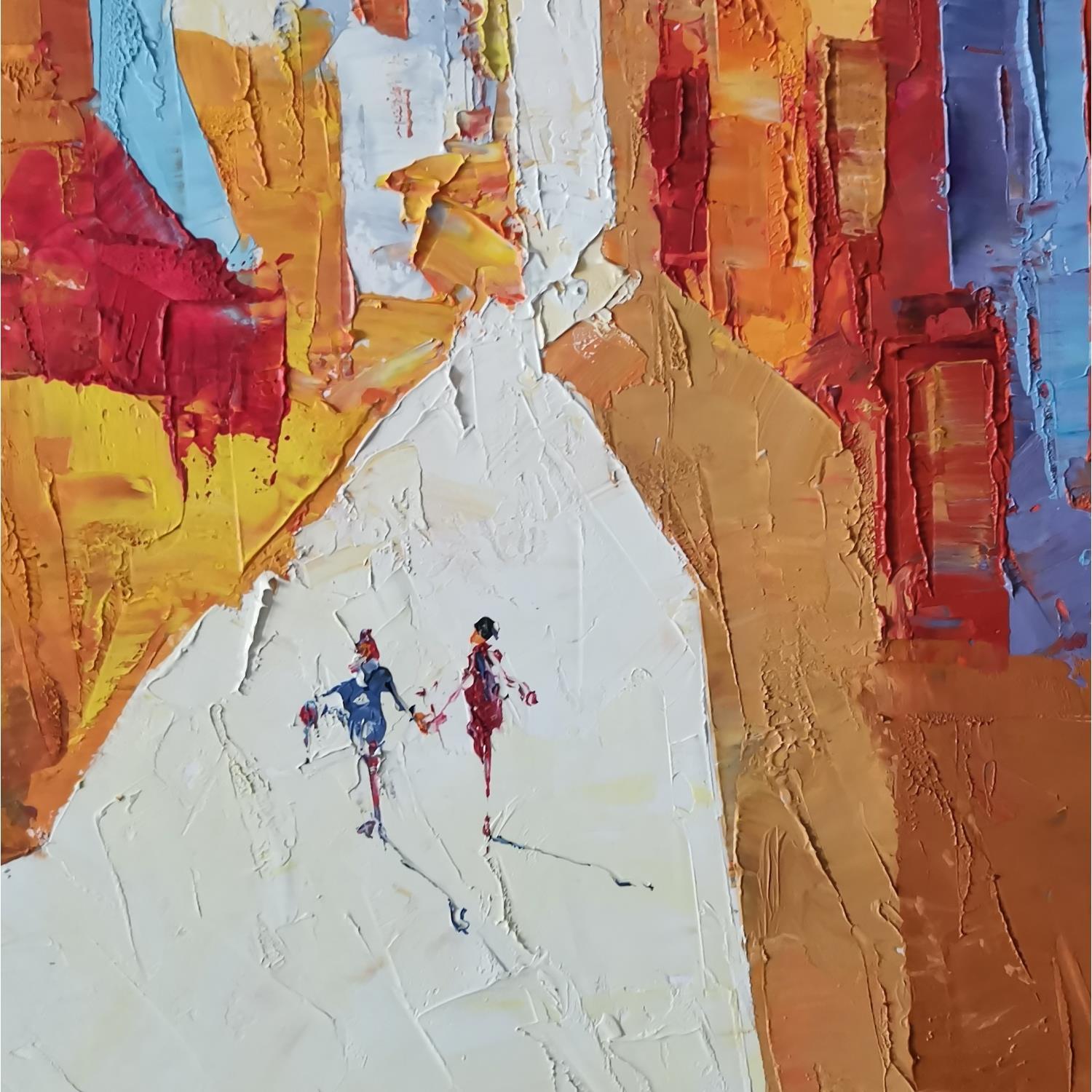 Peinture Les amoureux  par Tomàs | Tableau Abstrait Urbain Scènes de vie Huile