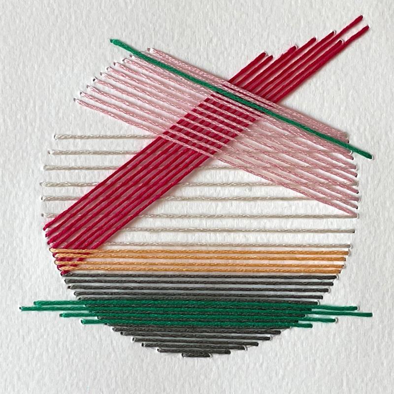 L'artiste a utilisé différentes techniques (broderie sur papier aquarelle) pour créer ce tableau petit format au style singulier.