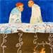 L'artiste a utilisé différentes techniques pour créer cette peinture petit format au style singulier.