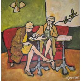 Cette oeuvre d'art contemporain unique et originale "Café entre copines" a été réalisée par l'artiste contemporain Signamarcheix Bernard.
