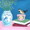 Cette oeuvre d'art contemporain unique et originale "Oiseau avec mimosa chinoiserie" a été réalisée par l'artiste contemporain Sally B.