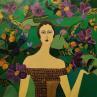 The lady with the violet flowersPeinture The lady with the violet flowers par Sundblad Silvina | Tableau Art naïf Acrylique Pastel