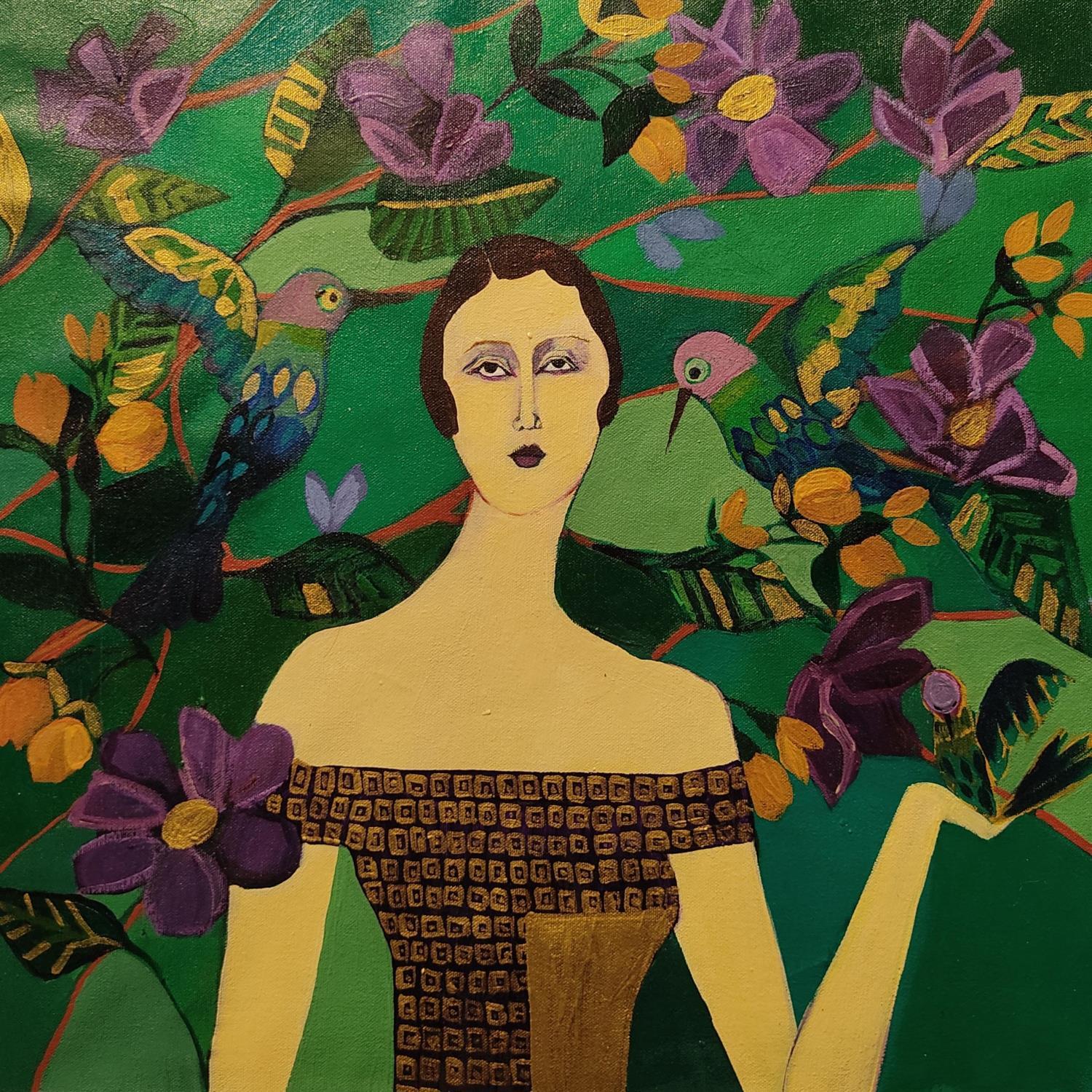Cette oeuvre d'art contemporain unique et originale "The lady with the violet flowers" a été réalisée par l'artiste contemporain Sundblad Silvina.