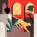 L'artiste a utilisé la technique Acrylique pour créer cette peinture petit format sur Toile de style Art naïf sur les thèmes Urbain, Animaux, Natures mortes.