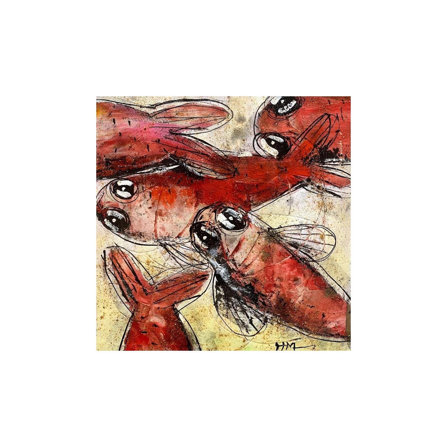 Peinture 5 Fish par Maury Hervé | Tableau Art naïf Animaux