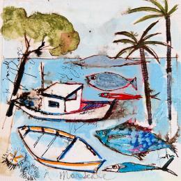 L'artiste a utilisé les techniques Aquarelle, Acrylique, Collage, Encre, Pastel pour créer cette peinture petit format sur Toile de style Art naïf sur les thèmes Scènes de vie, Marine, Paysages.