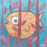 Peinture Poisson en forêt par Catoni Melina | Tableau Art naïf Marine Nature Animaux Carton Acrylique