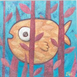 Poisson en forêtPeinture Poisson en forêt par Catoni Melina | Tableau Art naïf Marine Nature Animaux Carton Acrylique