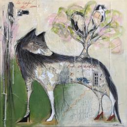 L'artiste a utilisé les techniques Acrylique, Collage, Pastel pour créer cette peinture grand format sur Papier de style Art Singulier sur le thème Animaux.