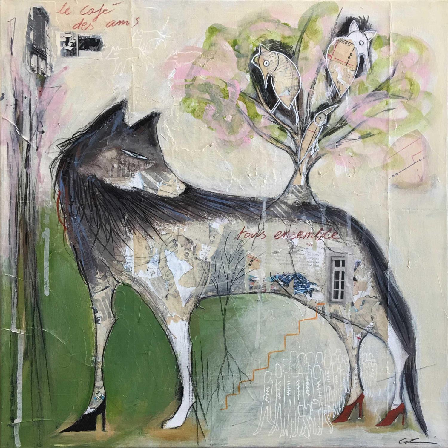 Cette oeuvre d'art contemporain unique et originale "Tous ensemble" a été réalisée par l'artiste contemporain Colin Sylvie.