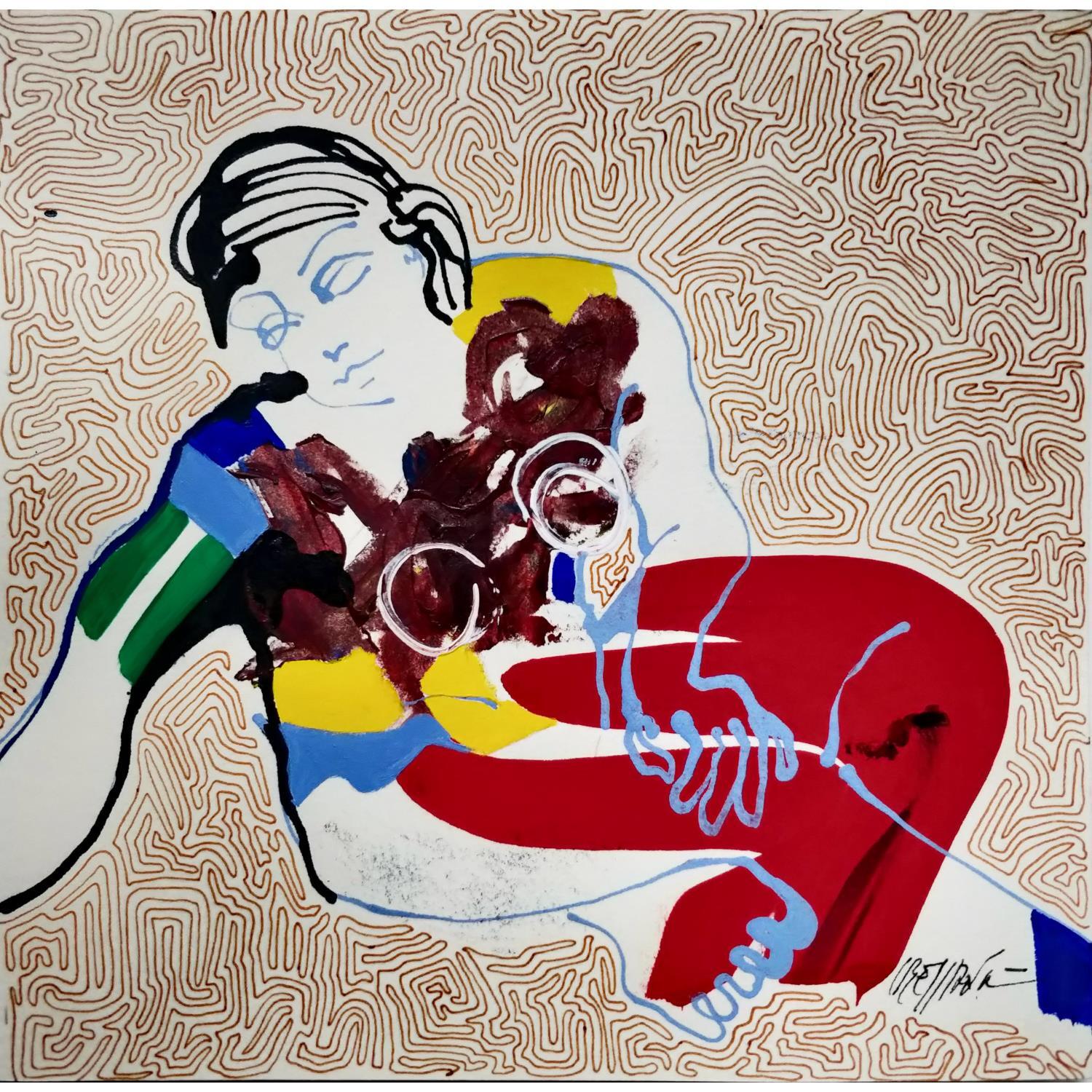 L'artiste a utilisé la technique Acrylique pour créer cette peinture petit format sur papier de style Art Singulier sur le thème nu.