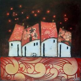 L'artiste a utilisé les techniques Acrylique, Collage pour créer cette peinture petit format sur Carton toilé de style Art Singulier sur le thème Paysages.