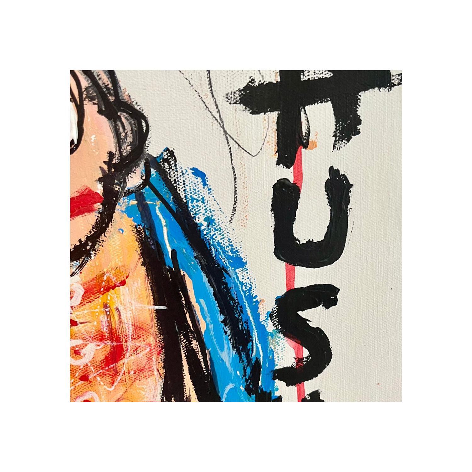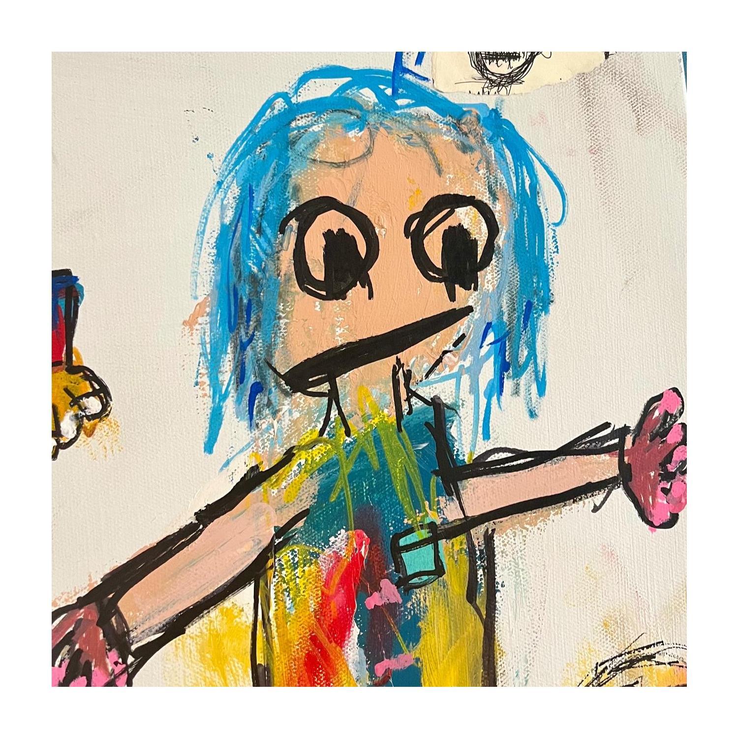 L'artiste a utilisé les techniques Acrylique, Pastel, Posca pour créer cette peinture grand format sur Toile de style Art Singulier sur le thème Portraits.