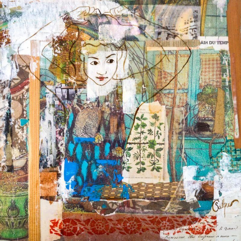 Découvrez les peintures figuratives aux techniques multiples de Sablyne telles que: le collage, l'acrylique, l'encre, le pastel ...